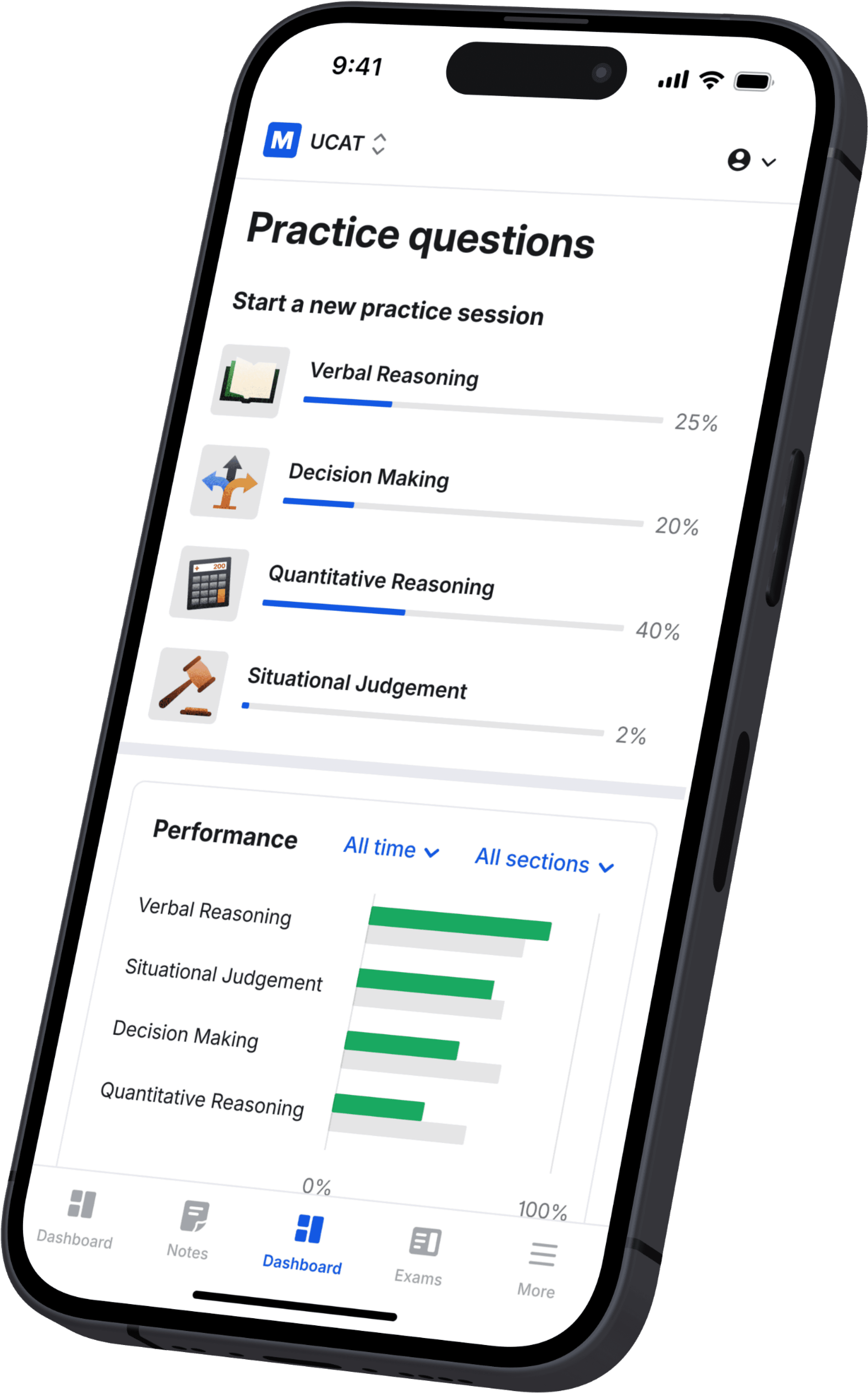 Experience your UCAT test day with a powerful exam replica, 25 full mocks, and realistic scaled scoring.